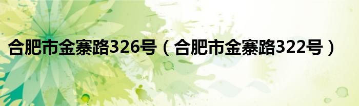 关于合肥市金寨路326号,合肥市金寨路322号这个很多人还不知道,今天菲菲来为大家解答以上的问题,现在让我们一起来看看吧!