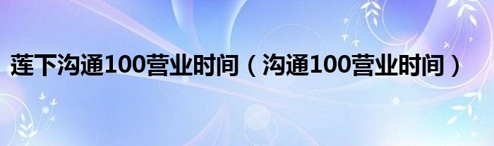 关于莲下沟通100营业时间,沟通100营业时间这个很多人还不知道,今天菲菲来为大家解答以上的问题,现在让我们一起来看看吧!