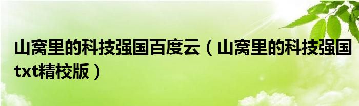 关于山窝里的科技强国百度云,山窝里的科技强国txt精校版这个很多人还不知道,今天菲菲来为大家解答以上的问题,现在让我们一起来看看吧!
