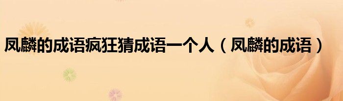 大家好,小晋来为大家解答以下问题,关于凤麟的成语疯狂猜成语一个人,凤麟的成语很多人还不知道,今天让我们一起来看看吧!