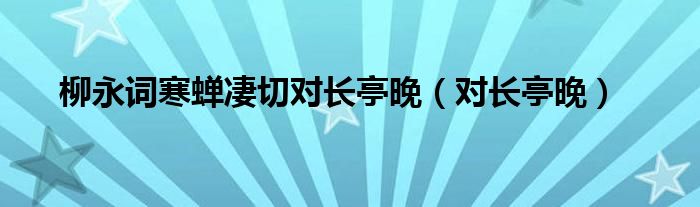 柳永词寒蝉凄切对长亭晚(对长亭晚)