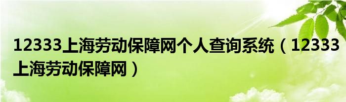 关于12333上海劳动保障网个人查询系统,12333上海劳动保障网这个很多人还不知道,今天菲菲来为大家解答以上的问题,现在让我们一起来看看吧!