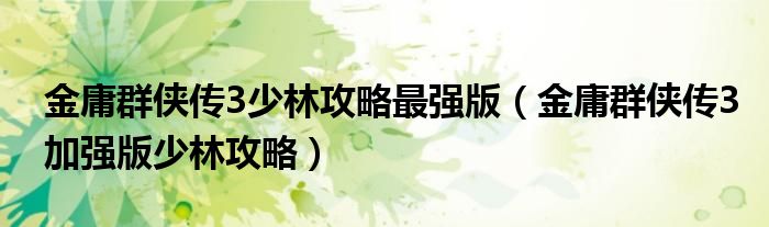 关于金庸群侠传3少林攻略最强版,金庸群侠传3加强版少林攻略这个很多人还不知道,今天菲菲来为大家解答以上的问题,现在让我们一起来看看吧!