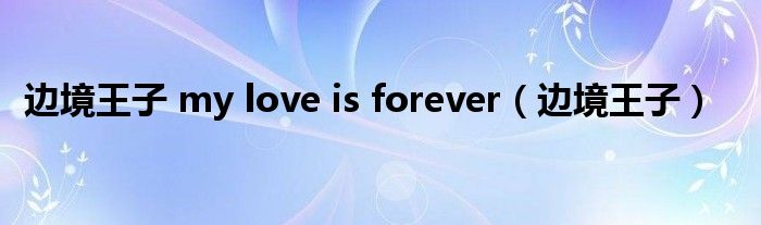 关于边境王子 my love is forever,边境王子这个很多人还不知道,今天菲菲来为大家解答以上的问题,现在让我们一起来看看吧!