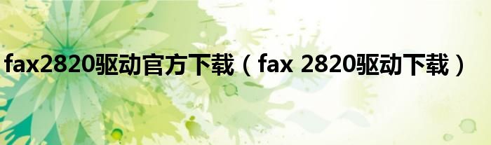 关于fax2820驱动官方下载,fax 2820驱动下载这个很多人还不知道,今天菲菲来为大家解答以上的问题,现在让我们一起来看看吧!