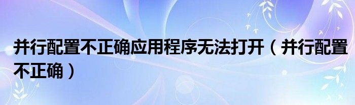 大家好,小飞来为大家解答以上问题,并行配置不正确应用程序无法打开,并行配置不正确很多人还不知道,现在让我们一起来看看吧!