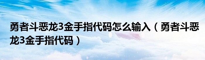 关于勇者斗恶龙3金手指代码怎么输入,勇者斗恶龙3金手指代码这个很多人还不知道,今天菲菲来为大家解答以上的问题,现在让我们一起来看看吧!