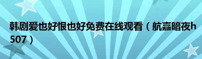 韩剧爱也好恨也好免费在线观看,航嘉暗夜h507很多人还不知道,乐乐来为大家解答以上问题,现在让我们一起来看看吧!