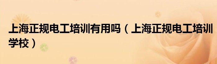 上海正规电工培训有用吗(上海正规电工培训学校)
