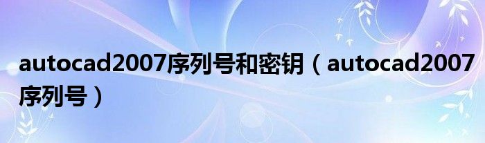 大家好,小飞来为大家解答以上问题,autocad2007序列号和密钥,autocad2007序列号很多人还不知道,现在让我们一起来看看吧!