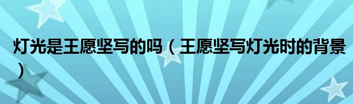 关于灯光是王愿坚写的吗,王愿坚写灯光时的背景这个很多人还不知道,今天菲菲来为大家解答以上的问题,现在让我们一起来看看吧!