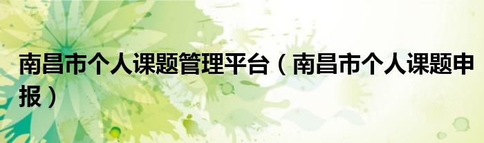 关于南昌市个人课题管理平台,南昌市个人课题申报这个很多人还不知道,今天菲菲来为大家解答以上的问题,现在让我们一起来看看吧!