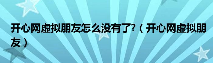 开心网虚拟朋友怎么没有了?,开心网虚拟朋友这个很多人还不知道,小飞来为大家解答以上的问题。现在让我们一起来看看吧!