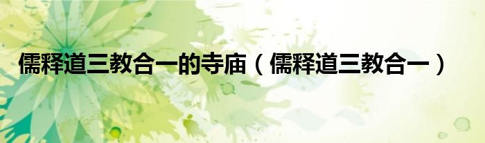 关于儒释道三教合一的寺庙,儒释道三教合一这个很多人还不知道,今天菲菲来为大家解答以上的问题,现在让我们一起来看看吧!