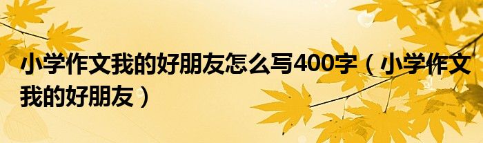 关于小学作文我的好朋友怎么写400字,小学作文我的好朋友这个很多人还不知道,今天菲菲来为大家解答以上的问题,现在让我们一起来看看吧!