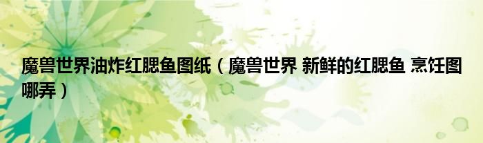 关于魔兽世界油炸红腮鱼图纸,魔兽世界 新鲜的红腮鱼 烹饪图哪弄这个很多人还不知道,今天菲菲来为大家解答以上的问题,现在让我们一起来看看吧!