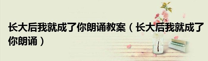 关于长大后我就成了你朗诵教案,长大后我就成了你朗诵这个很多人还不知道,今天菲菲来为大家解答以上的问题,现在让我们一起来看看吧!