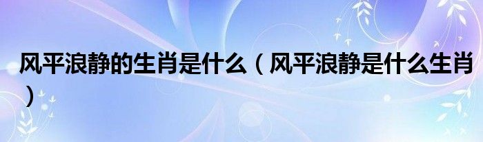 大家好,小晋来为大家解答以下问题,关于风平浪静的生肖是什么,风平浪静是什么生肖很多人还不知道,今天让我们一起来看看吧!