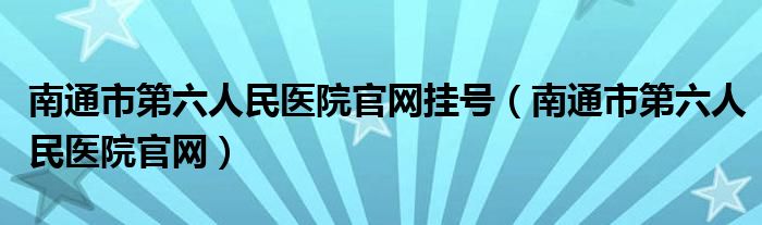 关于南通市第六人民医院官网挂号,南通市第六人民医院官网这个很多人还不知道,今天菲菲来为大家解答以上的问题,现在让我们一起来看看吧!