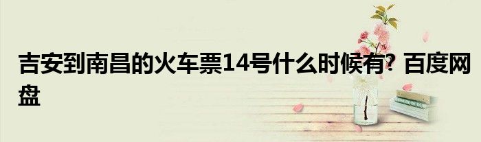 关于吉安到南昌的火车票14号什么时候有? 百度网盘这个很多人还不知道,今天菲菲来为大家解答以上的问题,现在让我们一起来看看吧!