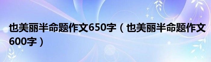 关于也美丽半命题作文650字,也美丽半命题作文600字这个很多人还不知道,今天菲菲来为大家解答以上的问题,现在让我们一起来看看吧!