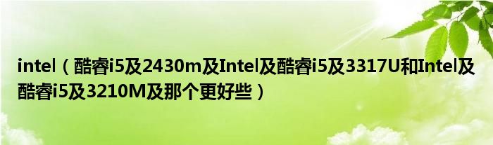 大家好,小常来为大家解答以上问题。intel,酷睿i5及2430m及Intel及酷睿i5及3317U和Intel及酷睿i5及3210M及那个更好些很多人还不知道,现在让我们一起来看看吧!