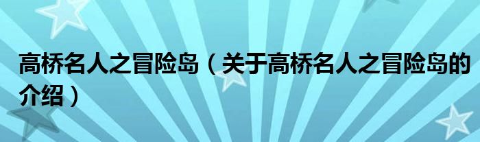 大家好,今天小乐来为大家解答以上的问题。高桥名人之冒险岛,关于高桥名人之冒险岛的介绍很多人还不知道,现在让我们一起来看看吧!