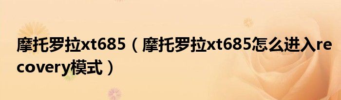 1,摩托罗拉xt685怎么进入recovery模式:1、将手机处于关机状态下2、按住音量上键和音量下键不松,再按开机键,手机将会显示MOTO logo图标。过一段时间会出现一个带黄色问号的三角形。3、按主屏键即可进入Recovery模式。(屏幕右数第2个键)