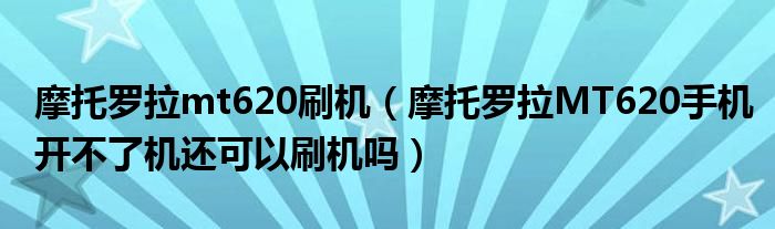 1,摩托罗拉MT620手机开不了机还可以刷机吗:可以的。