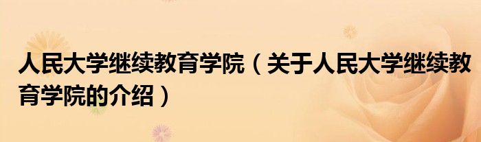 1、中国人民大学是新中国成人高等教育事业的开创者,中国人民大学继续教育学院是具体组织实施成人高等教育、网络教育的教学实体和教学管理部门,学院面向在职人员,以非全日制学历教育为主,适当开展各种层次和类型的继续教育。