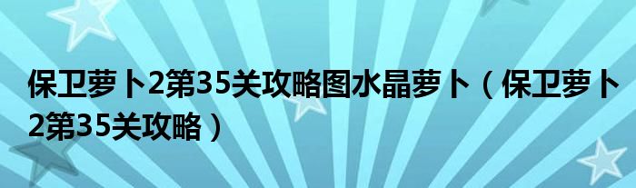 大家好,小晋来为大家解答以下问题,关于保卫萝卜2第35关攻略图水晶萝卜,保卫萝卜2第35关攻略很多人还不知道,今天让我们一起来看看吧!