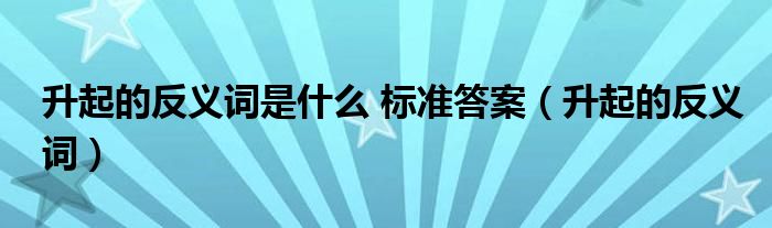 大家好,小晋来为大家解答以下问题,关于升起的反义词是什么 标准答案,升起的反义词很多人还不知道,今天让我们一起来看看吧!