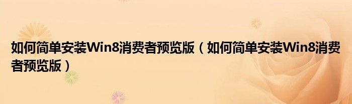 大家好,今天小悦来为大家解答以上问题。如何简单安装Win8消费者预览版,如何简单安装Win8消费者预览版很多人还不知道,现在让我们一起来看看吧!