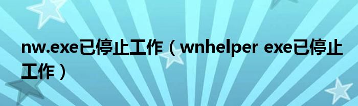 关于nw.exe已停止工作,wnhelper exe已停止工作这个很多人还不知道,今天菲菲来为大家解答以上的问题,现在让我们一起来看看吧!