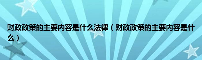 关于财政政策的主要内容是什么法律,财政政策的主要内容是什么这个很多人还不知道,今天菲菲来为大家解答以上的问题,现在让我们一起来看看吧!