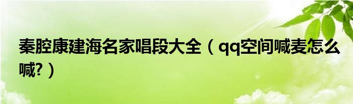 大家好,今天小悦来为大家解答以上问题。秦腔康建海名家唱段大全,qq空间喊麦怎么喊?很多人还不知道,现在让我们一起来看看吧!