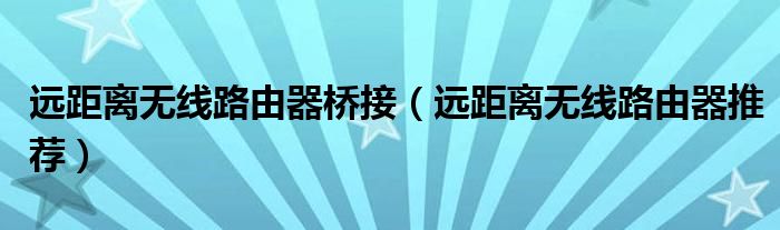 大家好,今天小悦来为大家解答以上问题。远距离无线路由器桥接,远距离无线路由器推荐很多人还不知道,现在让我们一起来看看吧!