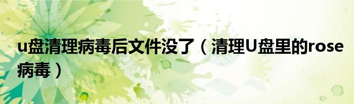 大家好,今天小悦来为大家解答以上问题。u盘清理病毒后文件没了,清理U盘里的rose病毒很多人还不知道,现在让我们一起来看看吧!