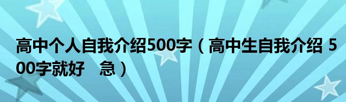 关于高中个人自我介绍500字,高中生自我介绍 500字就好 急这个很多人还不知道,今天菲菲来为大家解答以上的问题,现在让我们一起来看看吧!