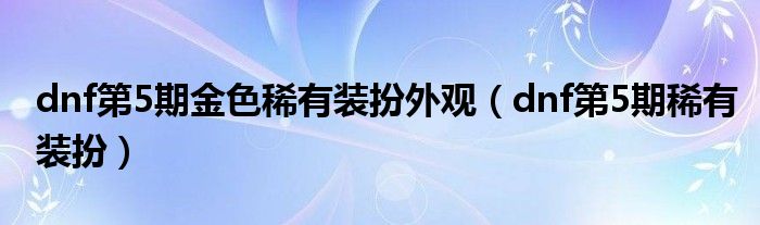 大家好,雨雨来为大家解答以上问题,dnf第5期金色稀有装扮外观,dnf第5期稀有装扮很多人还不知道,现在让我们一起来看看吧!