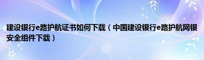 大家好,雨雨来为大家解答以上问题,建设银行e路护航证书如何下载,中国建设银行e路护航网银安全组件下载很多人还不知道,现在让我们一起来看看吧!