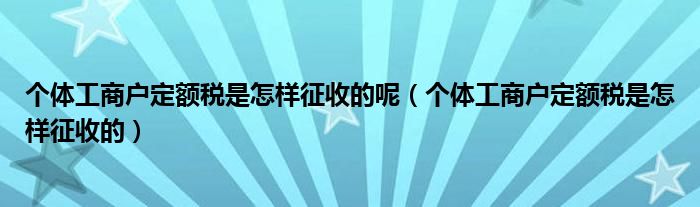 关于个体工商户定额税是怎样征收的呢,个体工商户定额税是怎样征收的这个很多人还不知道,今天菲菲来为大家解答以上的问题,现在让我们一起来看看吧!