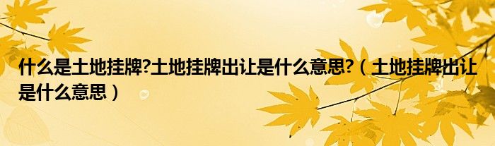 关于什么是土地挂牌?土地挂牌出让是什么意思?,土地挂牌出让是什么意思这个很多人还不知道,今天菲菲来为大家解答以上的问题,现在让我们一起来看看吧!