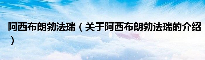 大家好,今天小乐来为大家解答以上的问题。阿西布朗勃法瑞,关于阿西布朗勃法瑞的介绍很多人还不知道,现在让我们一起来看看吧!