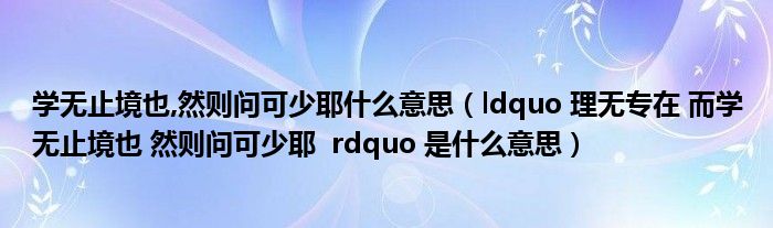 关于学无止境也,然则问可少耶什么意思,ldquo 理无专在 而学无止境也 然则问可少耶 rdquo 是什么意思这个很多人还不知道,今天菲菲来为大家解答以上的问题,现在让我们一起来看看吧!