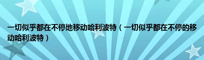 大家好,雨雨来为大家解答以上问题,一切似乎都在不停地移动哈利波特,一切似乎都在不停的移动哈利波特很多人还不知道,现在让我们一起来看看吧!