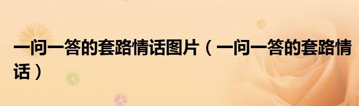 爱情是两个人在一起的甜言蜜语,所以适当的情话套路是情侣间甜蜜的交流。下面小编为你提供一个问答式的套路情话,希望能帮你积累经验,取悦你爱的人。