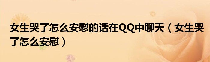 关于女生哭了怎么安慰的话在QQ中聊天,女生哭了怎么安慰这个很多人还不知道,今天菲菲来为大家解答以上的问题,现在让我们一起来看看吧!