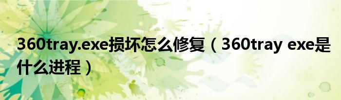 大家好,雨雨来为大家解答以上问题,360tray.exe损坏怎么修复,360tray exe是什么进程很多人还不知道,现在让我们一起来看看吧!