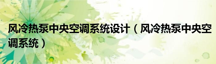 大家好,雨雨来为大家解答以上问题,风冷热泵中央空调系统设计,风冷热泵中央空调系统很多人还不知道,现在让我们一起来看看吧!